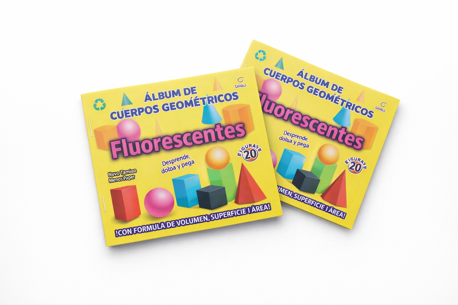 Incluye fórmulas de superficie y áreas para armar y pegar, de colores simples.